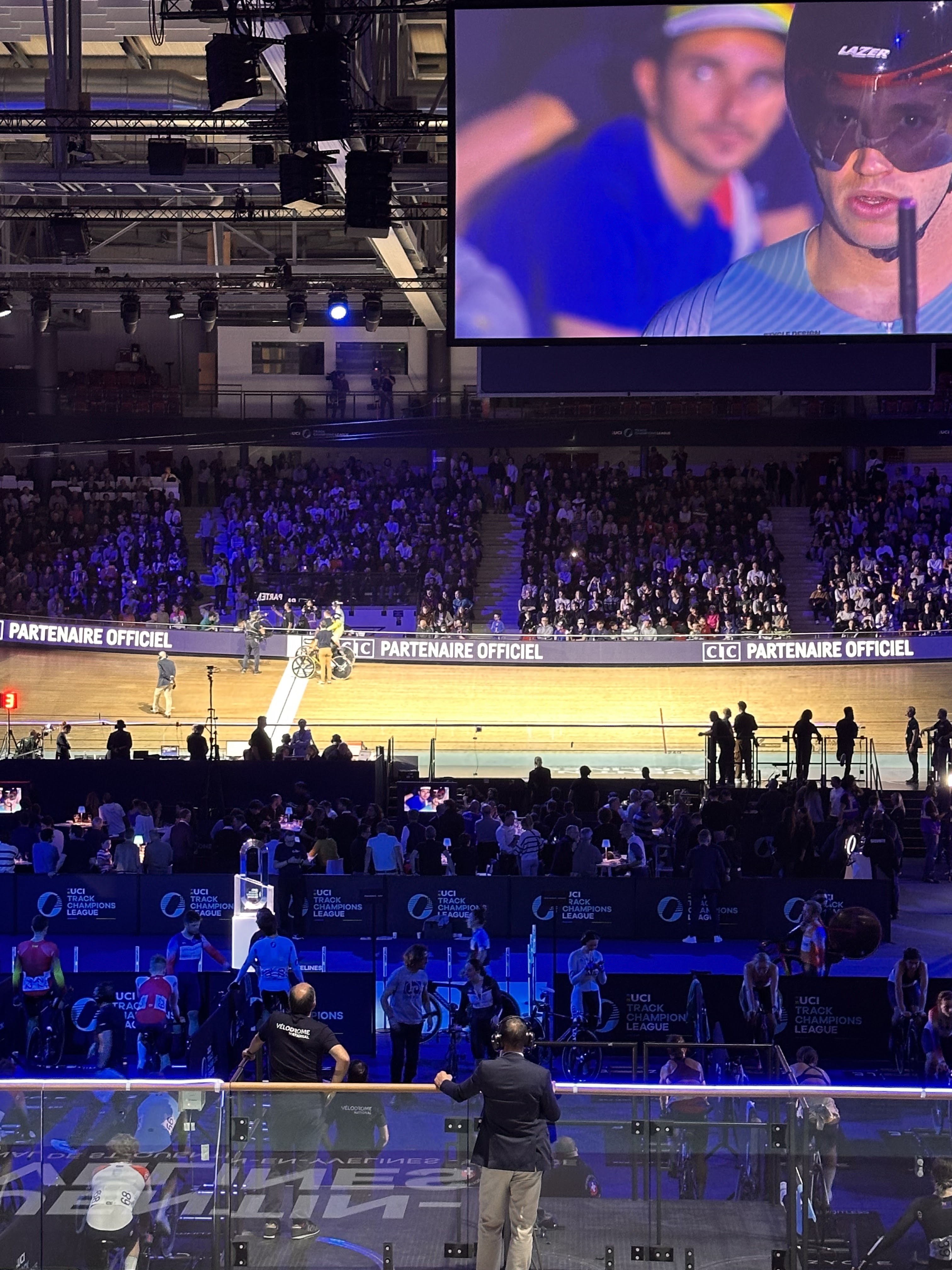 J'ai découvert les courses de vélo sur piste en vrai pour les UCI tracks champions league 2022. Depuis longtemps je voulais essayer pour voir ce que ça donnait et quelle claque. Une ambiance à l'américaine, de la musique, des jeux de lumières, des courses qui s'enchaînent à un rythme endiablé, une ambiance de folie. Bref, conquis et cette première ne sera pas la dernière. Un petit bémol sur le fléchage du parking. Il faut aller se garer un centre commercial à côté et ce n'est pas vraiment bien indiqué. On aurait pu s'économiser quelques dizaines de minutes de bouchon si on l'avait su