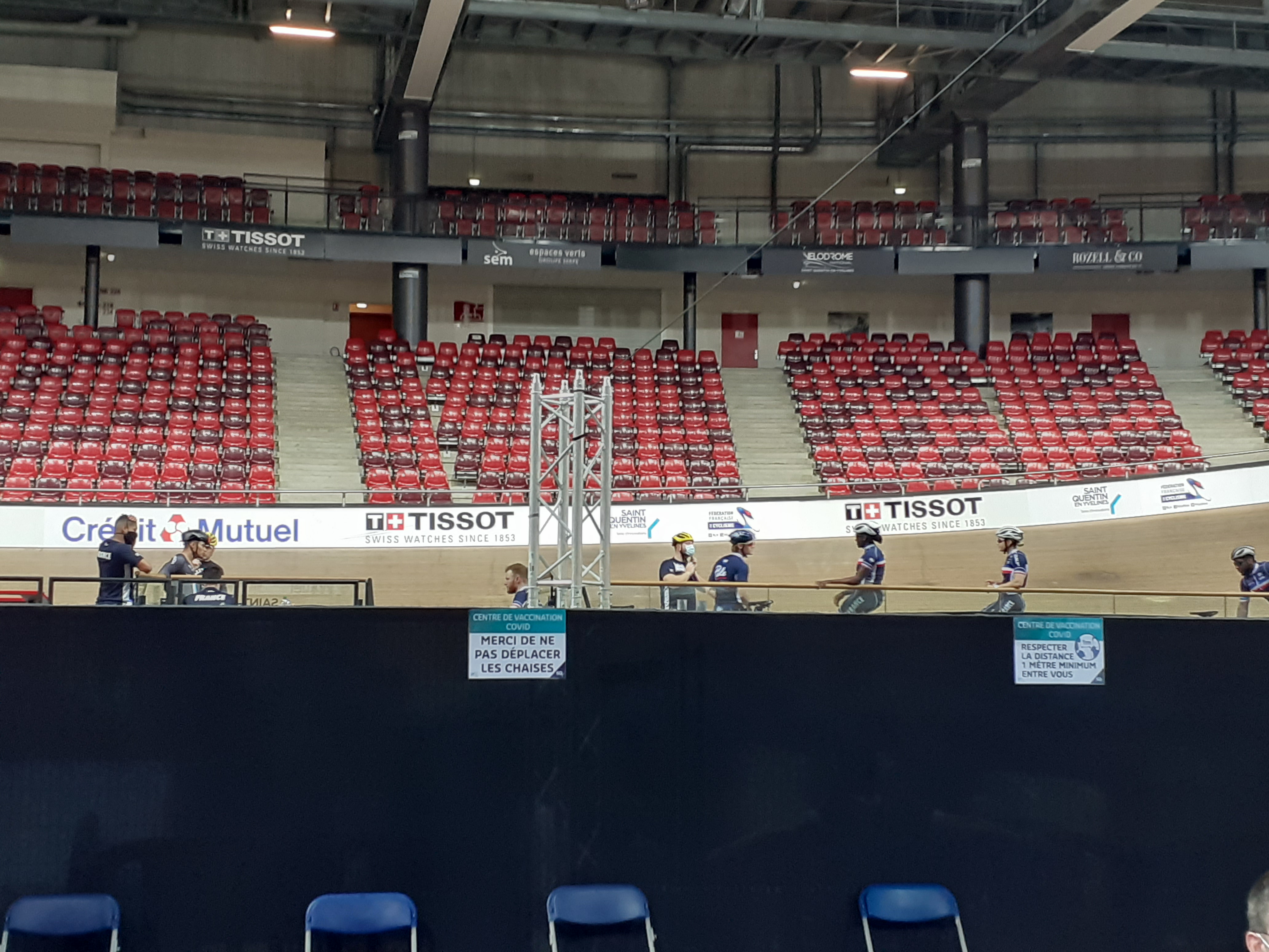 Pour informations, je ne suis pas un grand passionné de cyclisme : j'y suis allé dans le cadre de la vaccination COVID. J'ai été vachement impressionné par la qualité et la rigueur de l'organisation. 25mn de bouchon pour me garer (un dimanche matin, ça va, y'a pire). 10mn tout inclus pour le reste. La queue avance très vite, avec deux files. Une pour la primo injection et une autre pour la seconde. On est rapidement accueilli pour être retrouvé dans la liste des RDV. Puis on nous fait remplir une décharge. 2mn après une infirmière arrive, nous accueille dans une micro tente, elle lit la décharge, elle prend une seringue, elle vaccine en discutant, pépère, super sympa. Puis elle accompagne jusqu'au coeur du Vélodrome où sont réparties des chaises. Je m'assieds en attendant qu'on m'appelle. 10 secondes max après on m'appelle. Je dis que tout s'est bien passé, on prend un RDV direct pour la seconde injection. Et hop Dehors. 10 mn max. Sans déconner.